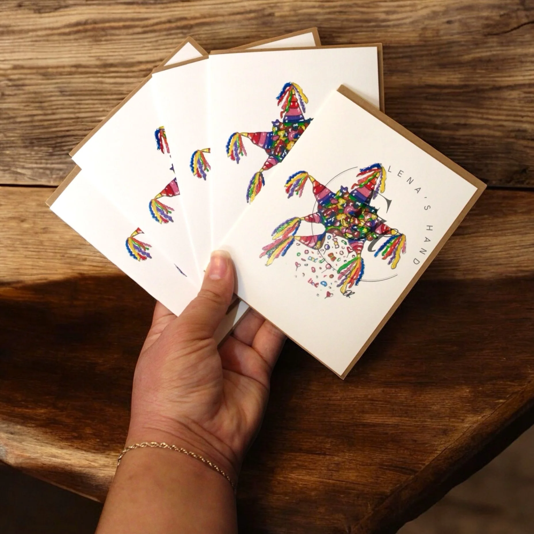 A star piñata card: printed on standard card paper with a brown envelope for sealing.